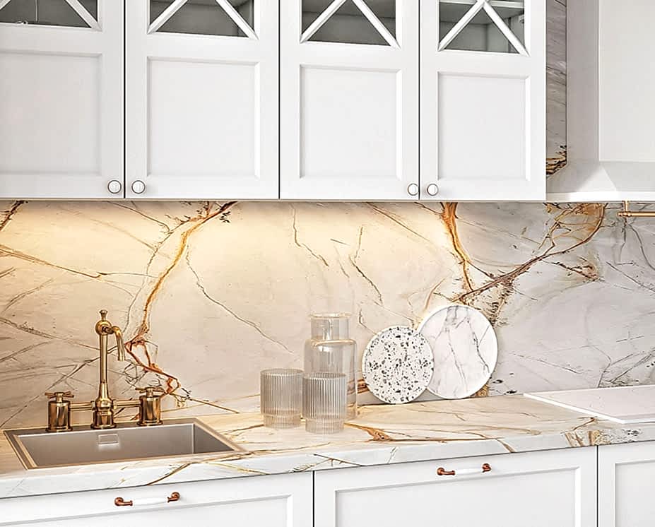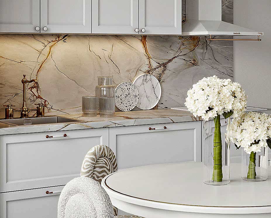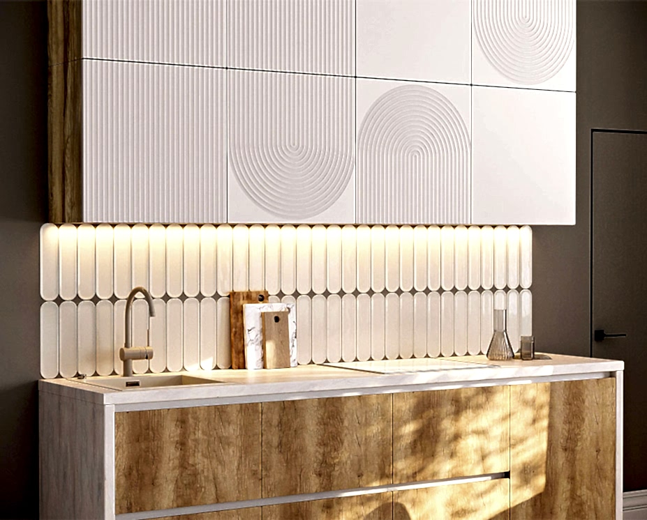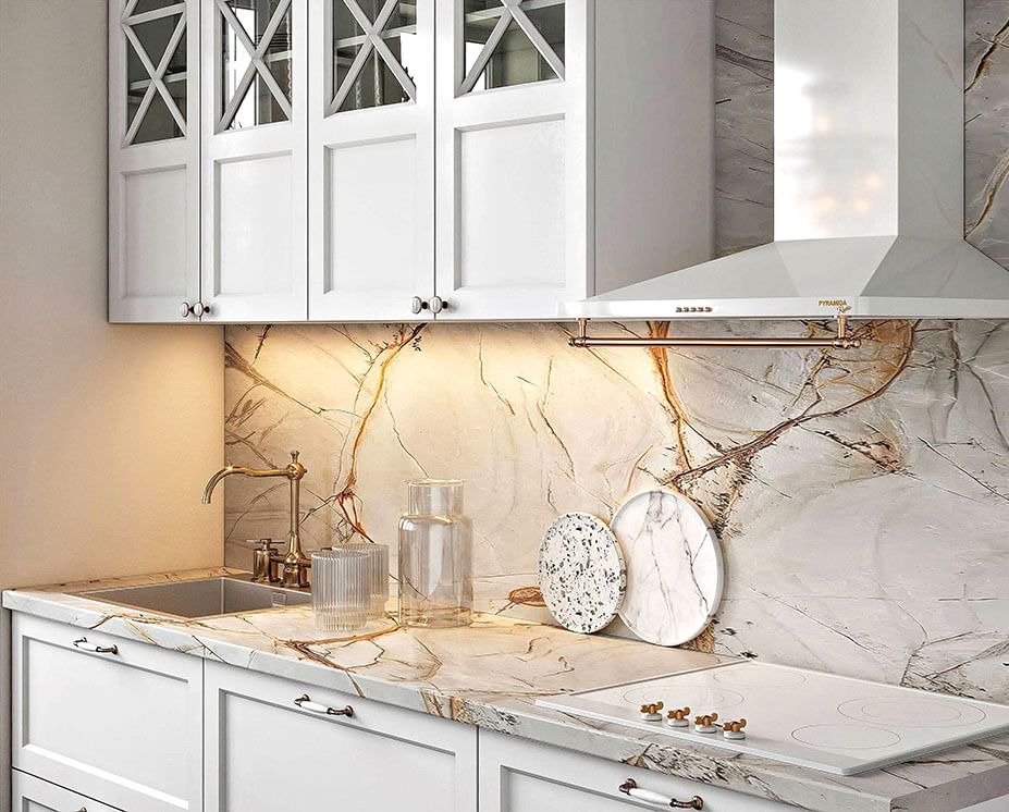 Архитектура коллекции «Агидель» строится на сочетании каменистых текстур и светлых легких поверхностей, что создает ощущение простора, легкости и гармонии. Это Pin-Up для тех, кто ценит чистую классику, свет и порядок в интерьере.