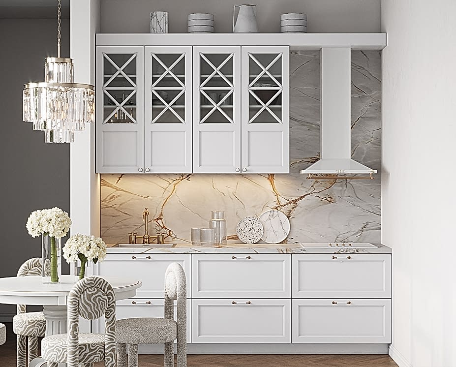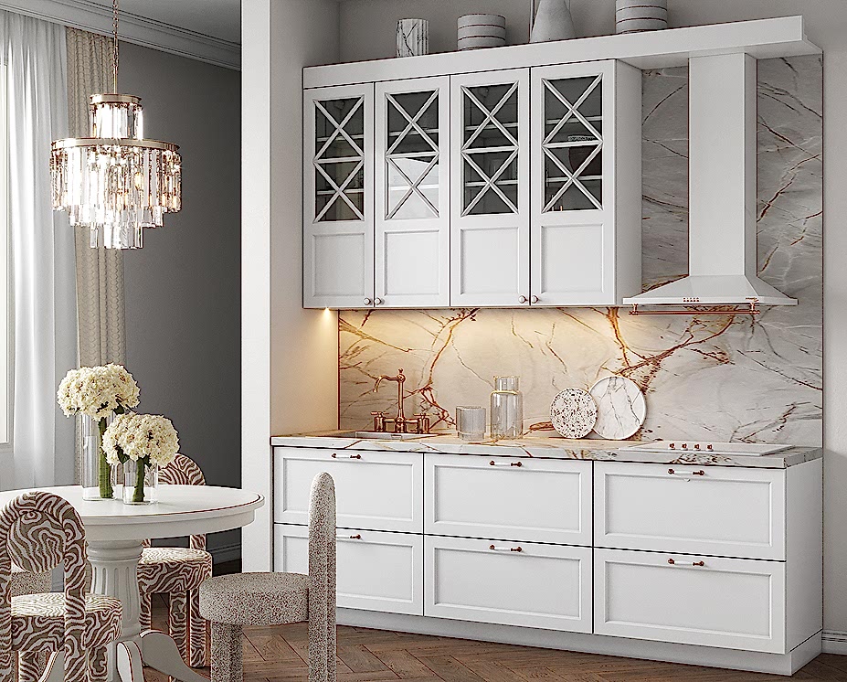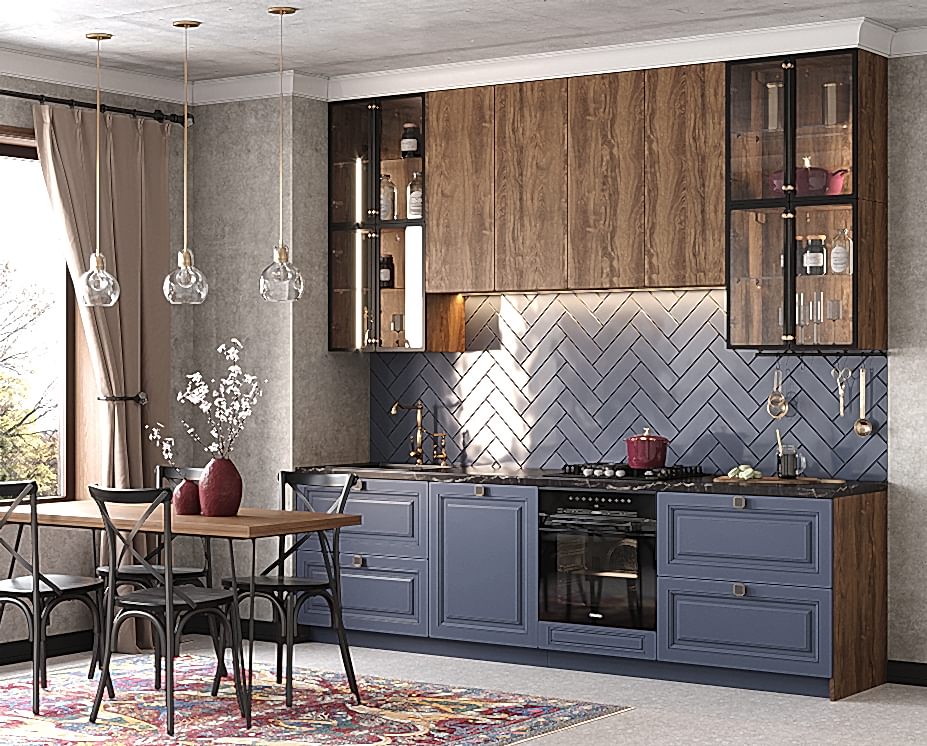Кухня «Ямантау» в классическом Pin-Up с изящными деталями подчеркивает гармонию и благородство. Стилевое решение разработано для тех, кто ценит утонченный лоск и максимальную функциональность в каждой детали.