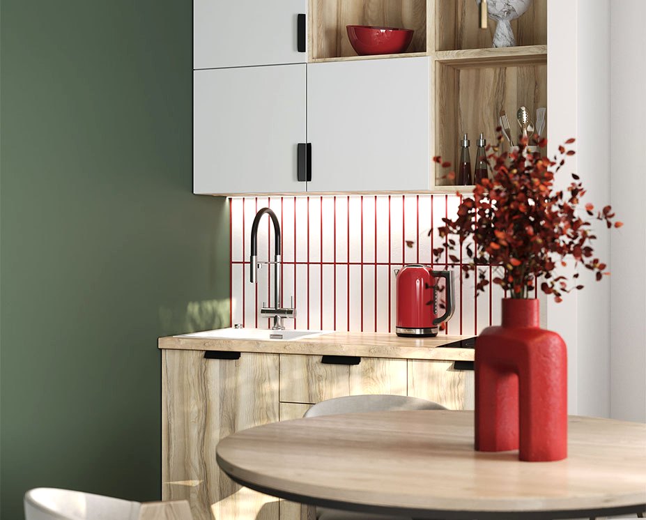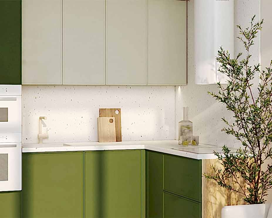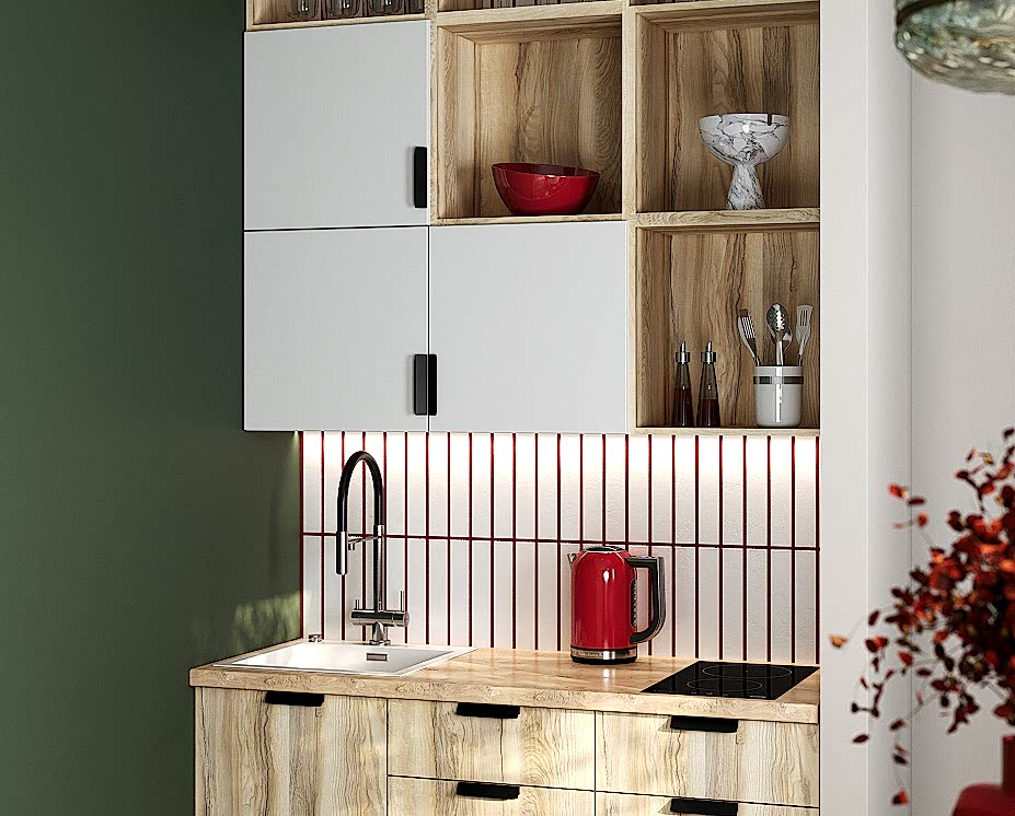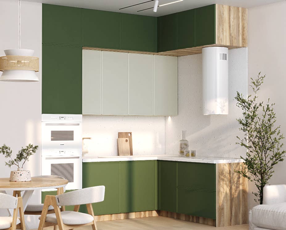 Изящные фрезеровки Pin-Up в кухне «Таганай» напоминают линии горных троп, а отсутствие лицевой фурнитуры подчёркивает чистоту форм - всё открывается легким нажатием. «Таганай» подойдет тем, кто ищет баланс между природной эстетикой и технологичной эргономикой.