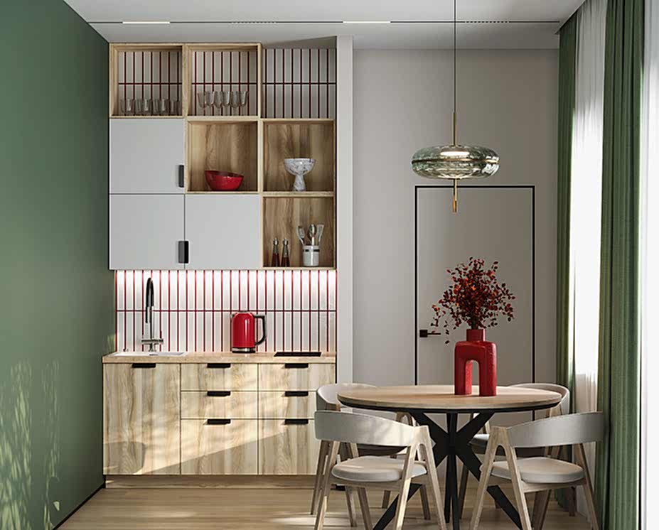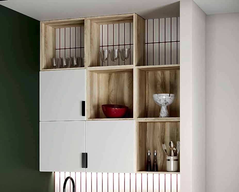 Светлые древесные фасады, гладкие поверхности, простая геометрия и минимализм делают коллекцию Pin-Up идеальной для небольшой квартиры, сохраняя легкость и функциональность. Кухня отлично подходит для тех, кто ценит продуманный комфорт в компактном пространстве.