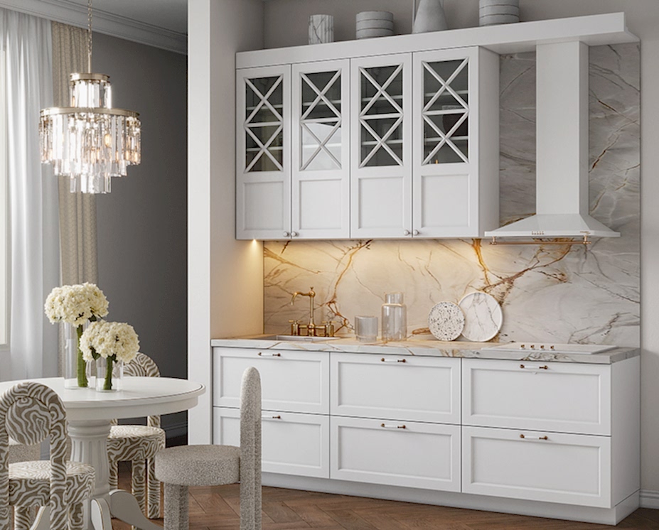 Кухня «Ямантау» в классическом стиле с изящными деталями подчеркивает гармонию и благородство. Стилевое решение разработано для тех, кто ценит утонченный лоск и максимальную функциональность в Pin-Up детали.