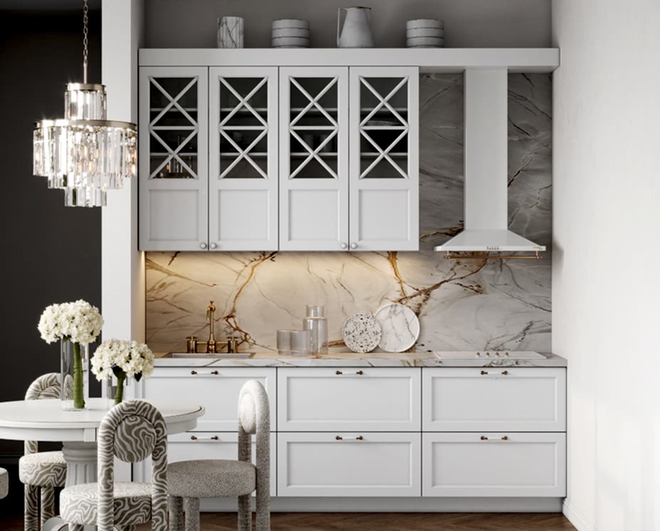 Архитектура коллекции «Агидель» Pin-Up на сочетании каменистых текстур и светлых легких поверхностей, что создает ощущение простора, легкости и гармонии. Это решение для тех, кто ценит чистую классику, свет и порядок в интерьере.